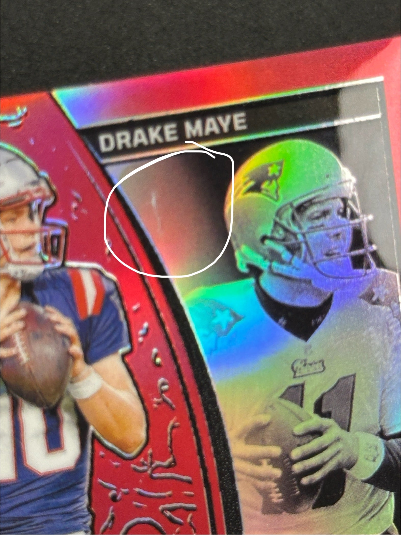 *Damaged* Drake Maye Drew Bledsoe /75 Red Eclipsing Legends Obsidian Patriots